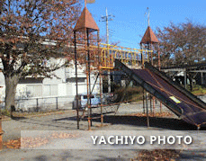 この公園にはもうひとつ、3歳~6歳向けの遊具がありますが(写真中)、ここはまだまだ健在です。撤去後はさらに広々とした砂利広場の公園になりそう。それはそれで、思い切り走りまわれて良いのかな?