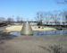 まだ肌寒い日が続く中、噴水のある公園へ立ち寄りました。手前の大きな噴水から水路が園内中央にある池まで続いていて、夏場は子供たちが水遊びする様子も。右奥はまだ未開拓の土地が広がり、奥には東京成徳大学人文学部のキャンパスが見えます。